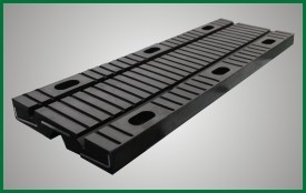 橡膠伸縮裝置利用橡膠材料剪切模量低的原理設(shè)計制作而成的,在剪切型橡膠伸縮體設(shè)有上下凹槽,橡膠體內(nèi)埋設(shè)承重鋼板和錨固鋼板,并預(yù)留螺栓孔,通過螺栓與梁端連成整體跨越梁端間隙。依靠上下凹槽之間的橡膠體剪切變形來滿足梁體結(jié)構(gòu)的相對位移。具有伸縮量大、行車平穩(wěn)等優(yōu)點。該產(chǎn)品可用于公路橋梁結(jié)構(gòu)中。