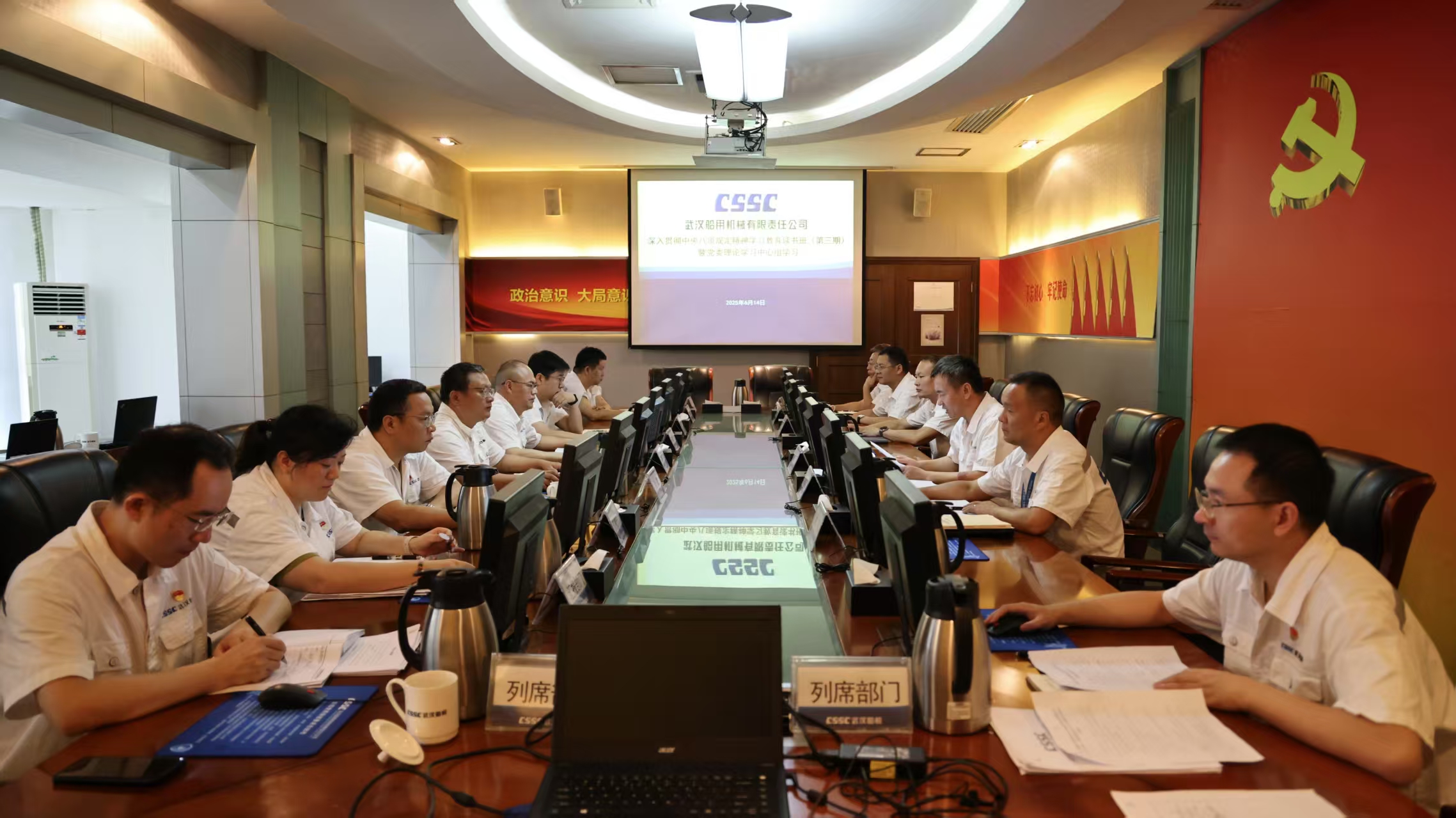 6月14日,中船集團(tuán)武漢船機(jī)黨委召開(kāi)深入貫徹中央八項(xiàng)規(guī)定精神學(xué)習(xí)教育讀書(shū)班(第三期)暨黨委理論學(xué)習(xí)中心組學(xué)習(xí)會(huì)議。公司黨委副書(shū)記、總經(jīng)理程立兵主持會(huì)議并領(lǐng)學(xué)。公司黨委理論學(xué)習(xí)中心組成員參加學(xué)習(xí)研討,總經(jīng)理助理、學(xué)習(xí)教育工作專班成員列席會(huì)議。
